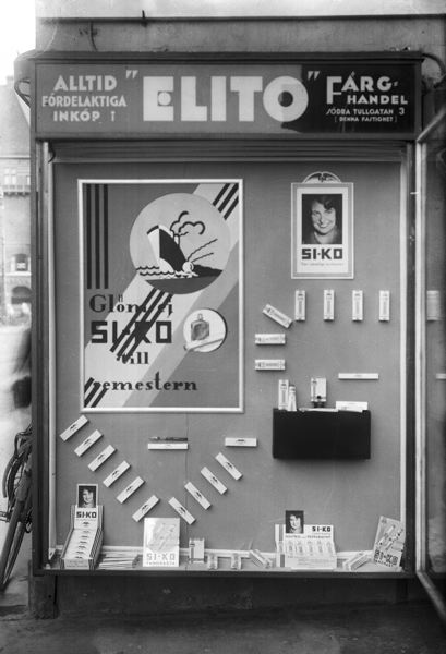 Elito färghandel på Södra Tullgatan 3. Skyltfönster.