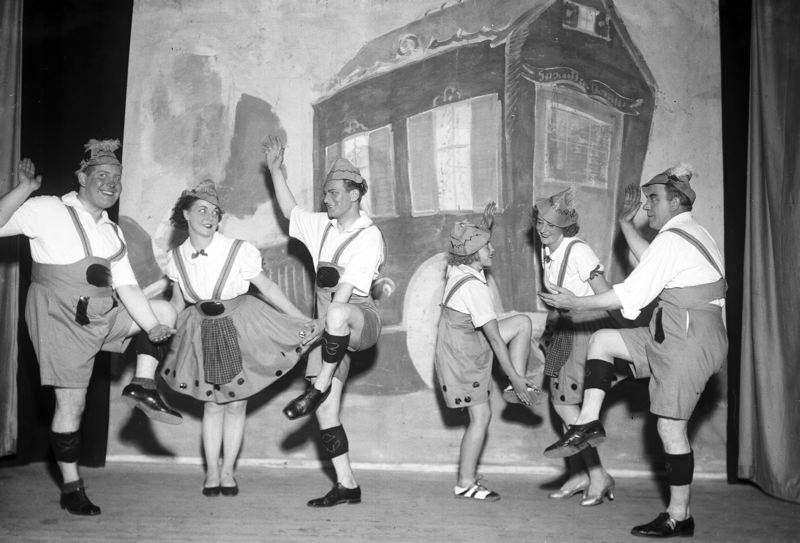 Skådespelare på scenen. Tyrolerdans. K. E. Sjöstedt.