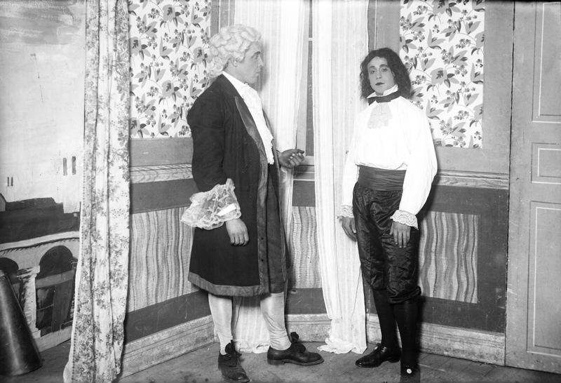 Amatörteater. "Under stjärnornas skydd". Par i historiska kostymer. R. T. K.