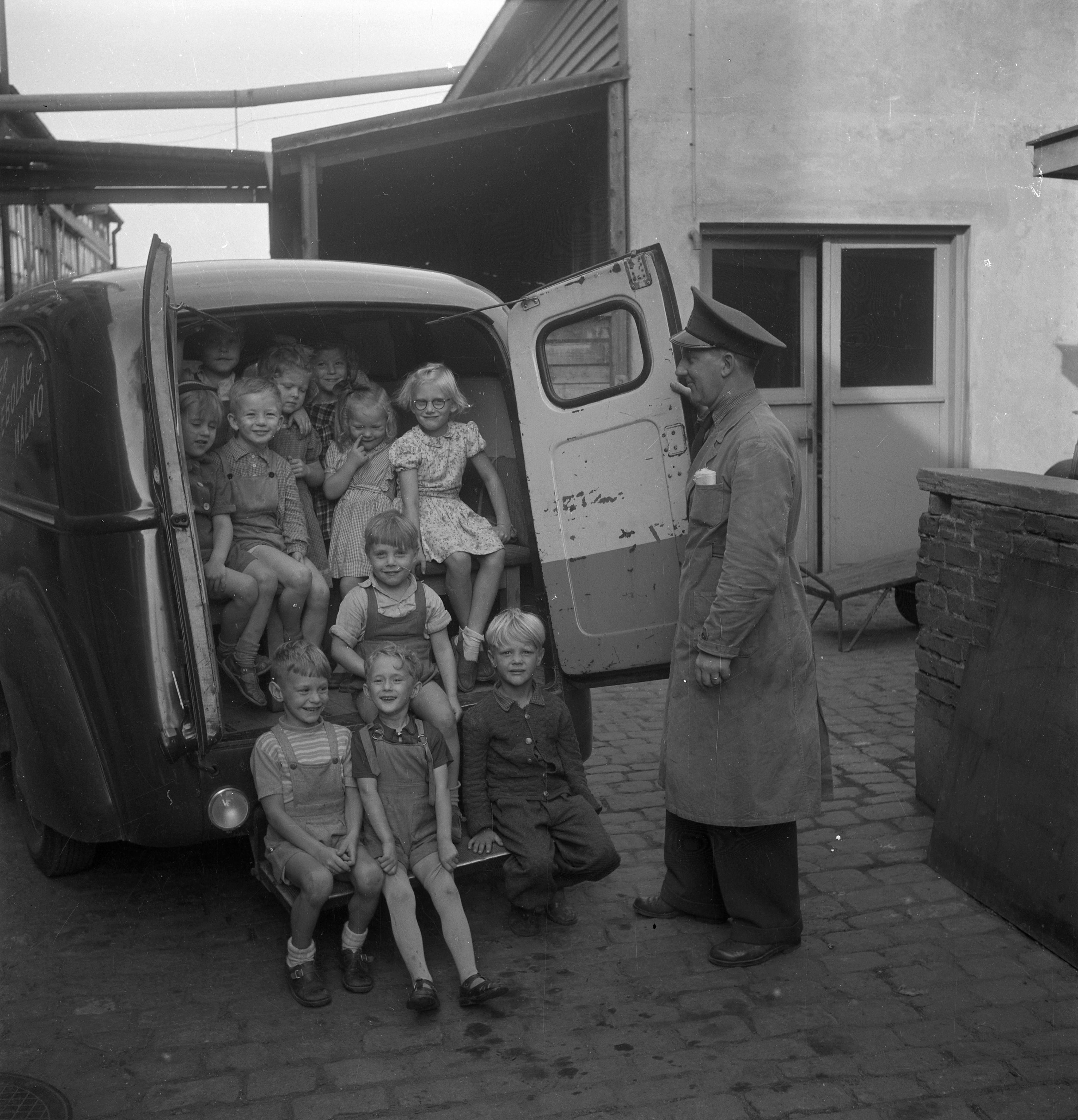 SKD 000044 :: industribyggnad, textilindustri, brandövning, barn, bil