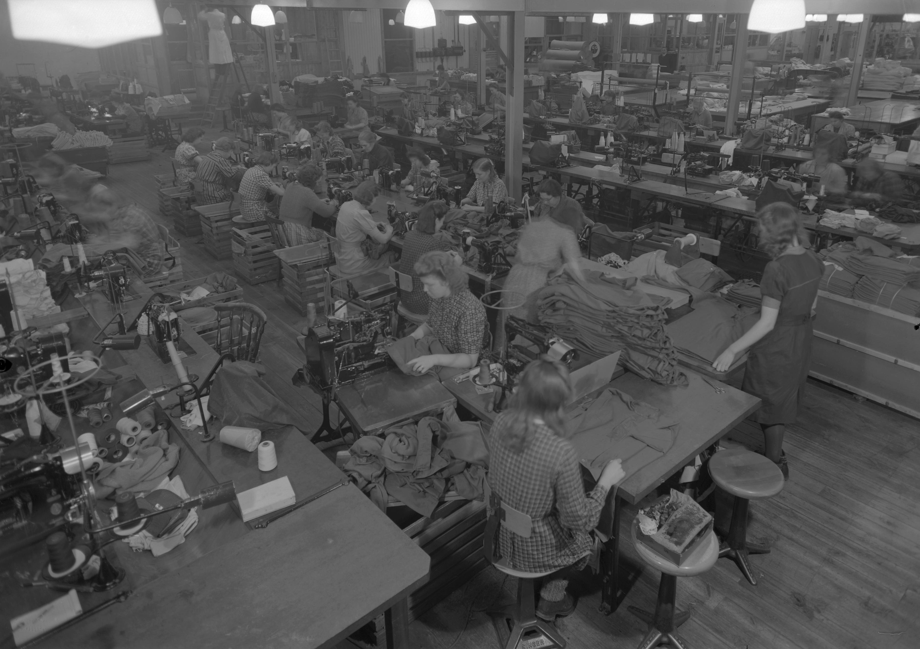Fabriksinteriör - tillverkning av trikåer. MYA / MAB