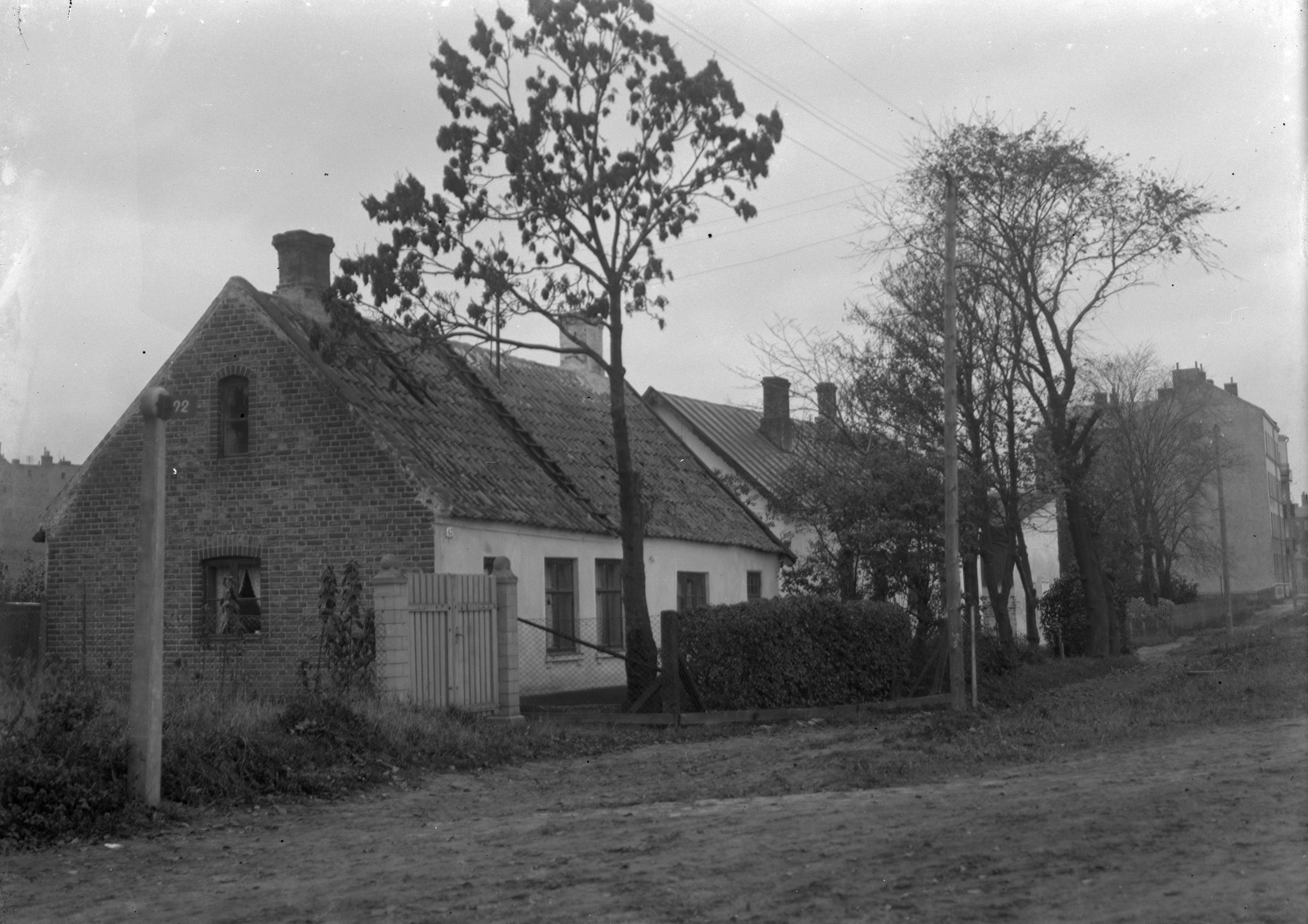 Gatubild - låghus, hyreshus i bakgrund.