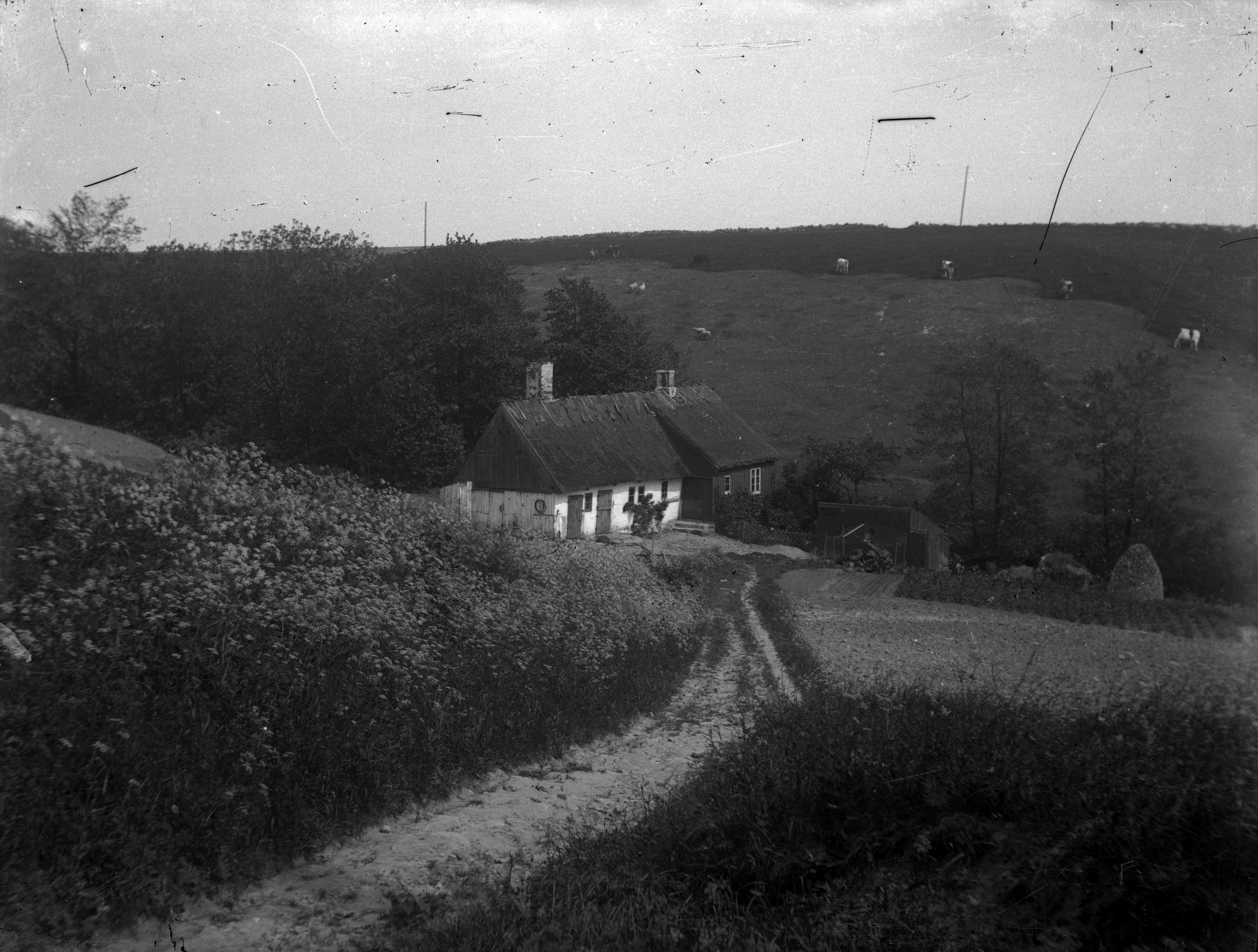 LFZ 000207 :: landskapsvy, hus, halmtak, bygdegård