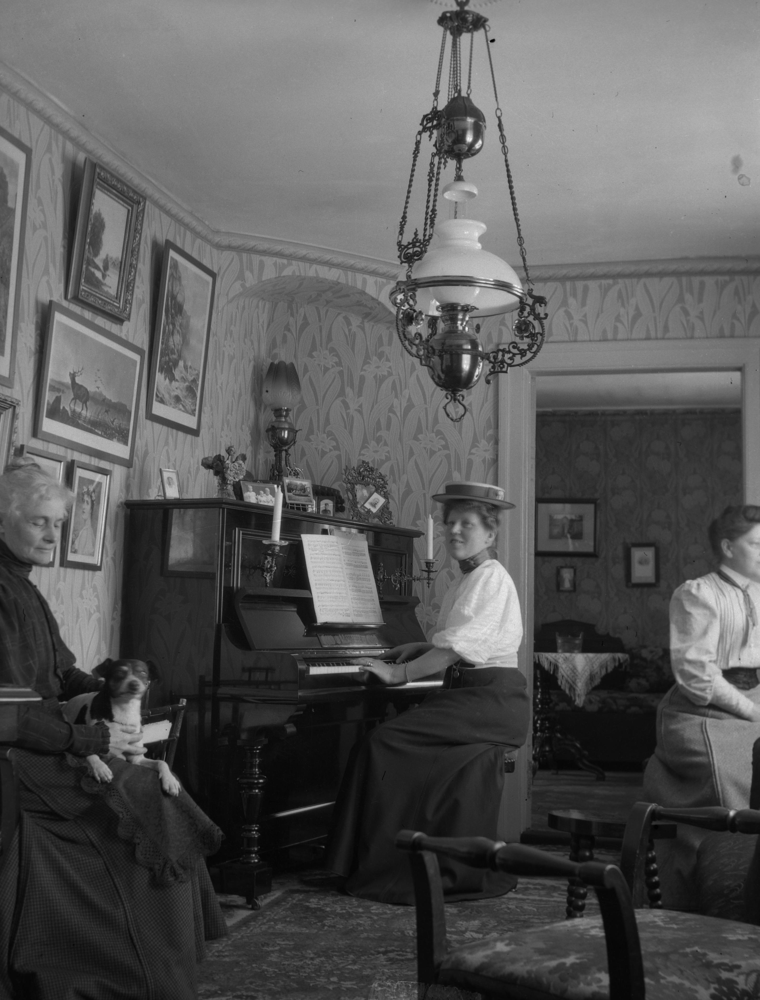 LFZ 000379 :: interiör, kvinna, musikinstrument