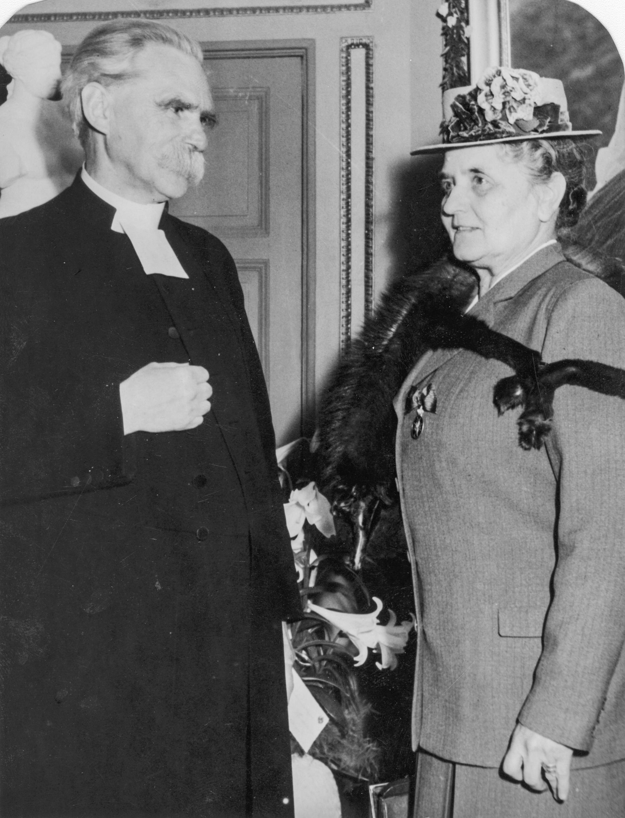 Fru Werner och kyrkoherde Erici (?) på Margaretapaviljongen i Pildammsparken i Malmö. 25-års jubileum (?)