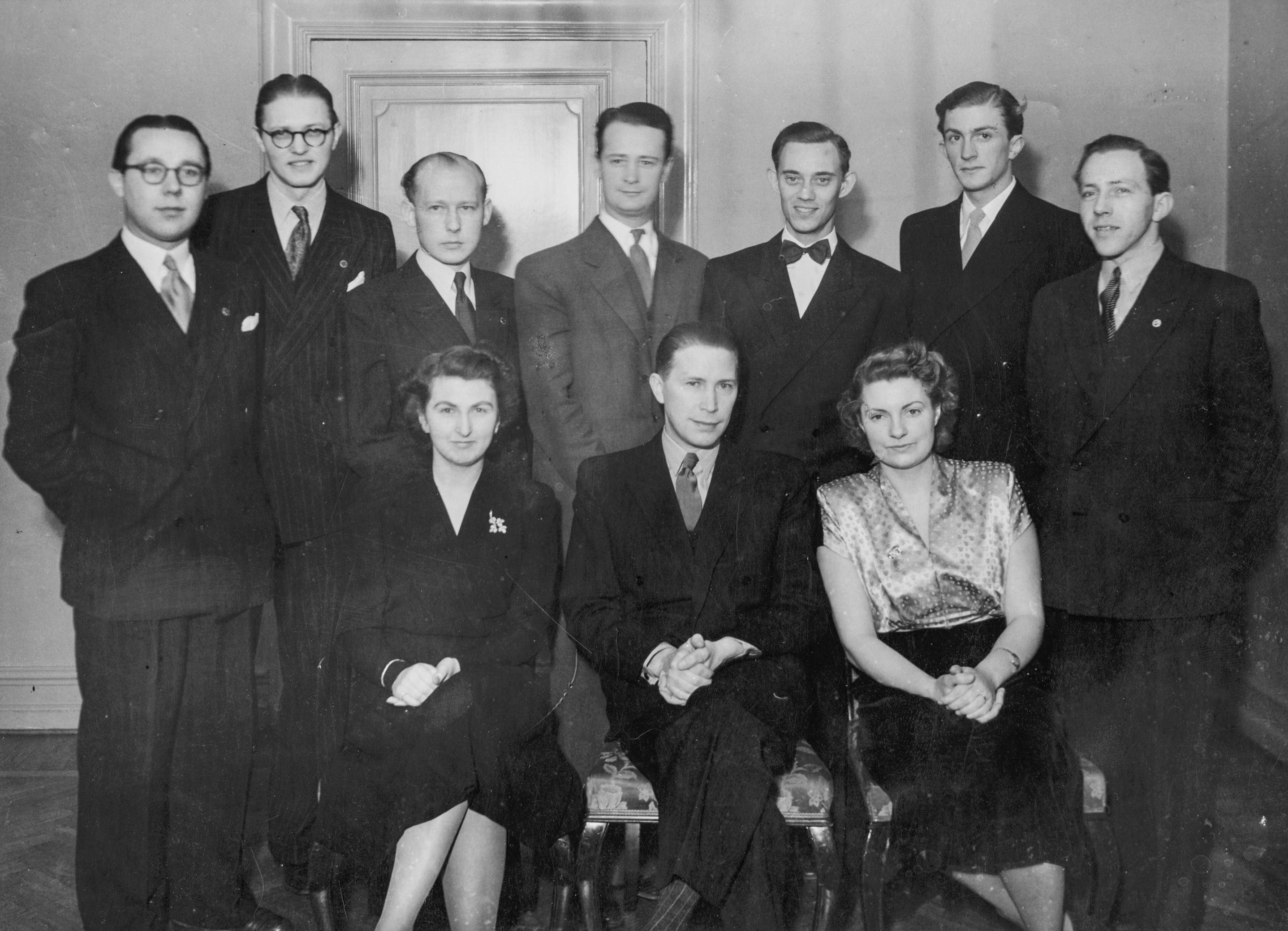 Gruppbild, interiör - Ungsvenska förening i Malmö. Styrelsen 1947.