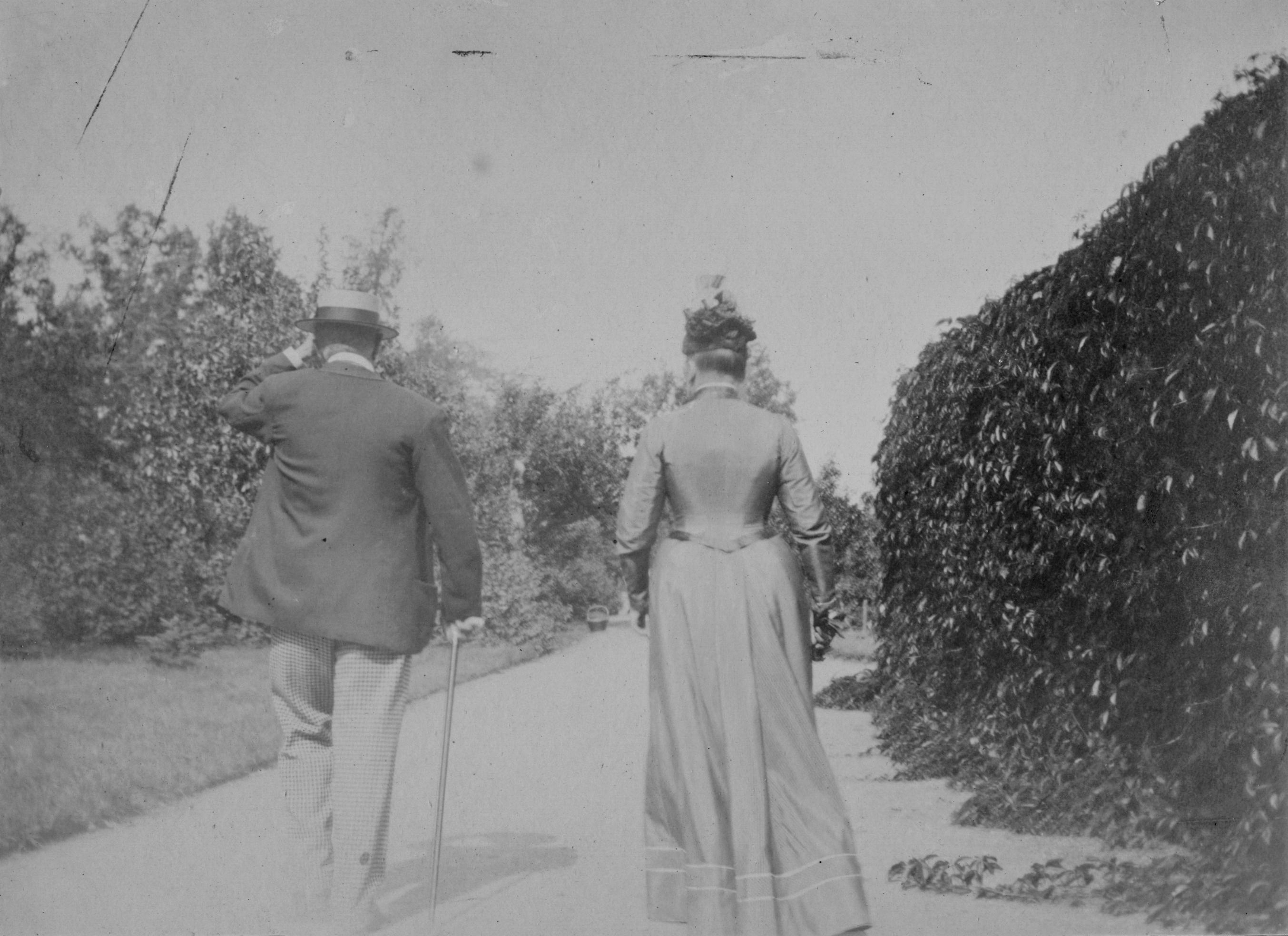 OPK 000540 :: parporträtt, park, gång, kvinna, kvinnor, hus, man, slott, män, gångar, par