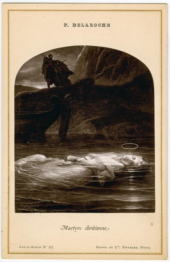Kabinettkort med avfotograferat konstverk. "Den kristna martyren" av Delaroche. Förlag: Coupil & Co., Paris.