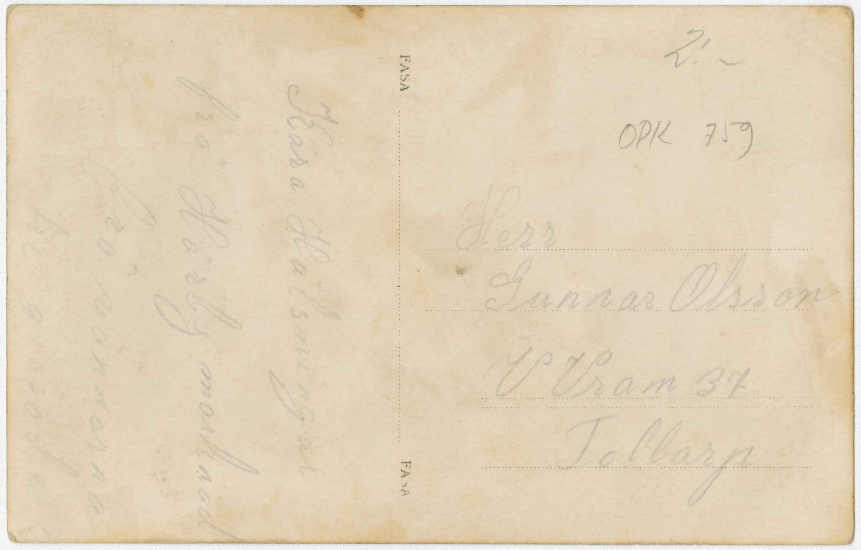Påskriften lyder: "Kära hälsningar frå Hörby marknad frå vännerna tre xxxxx".