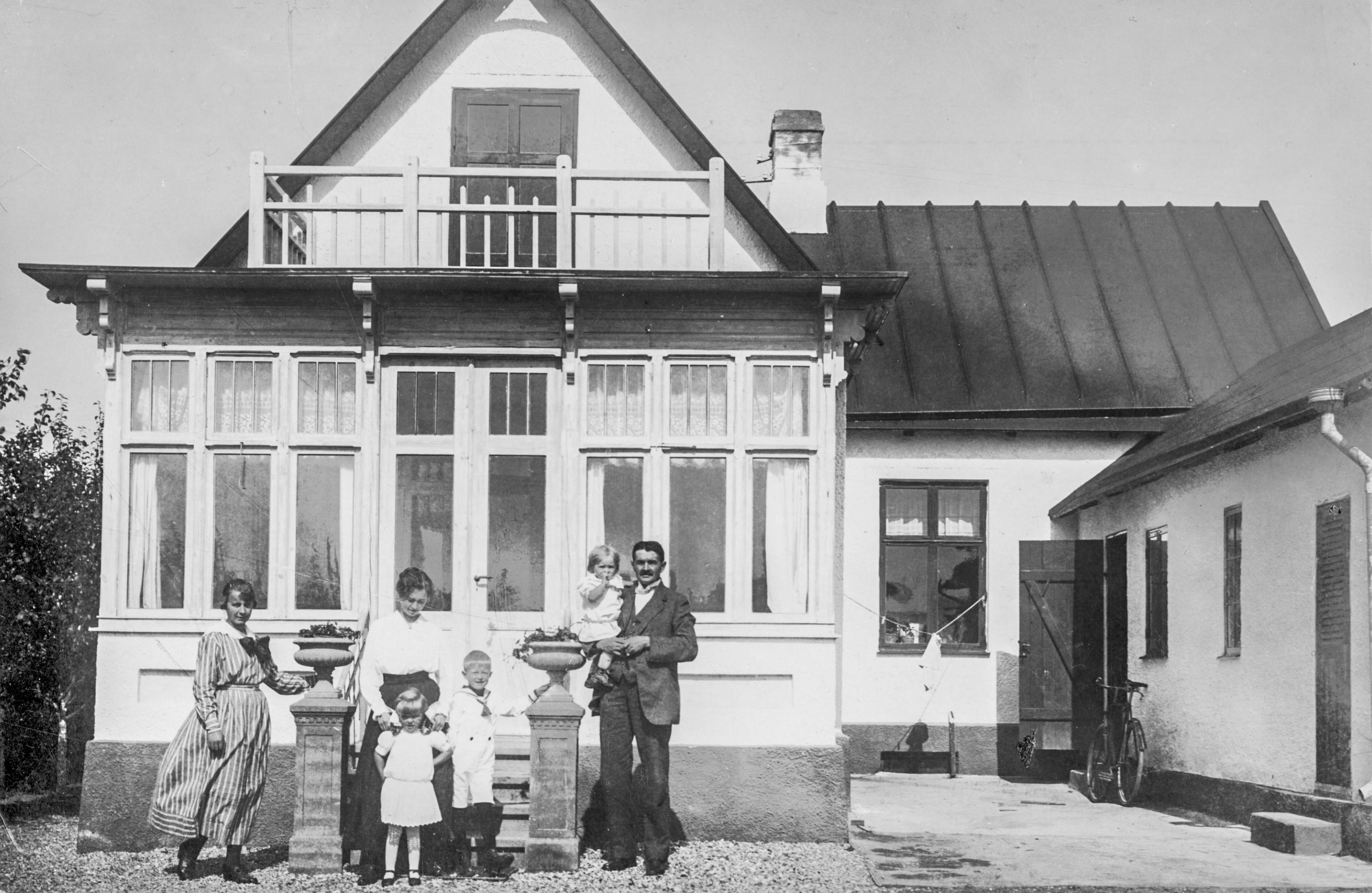 Familj vid hustrappan, villa.