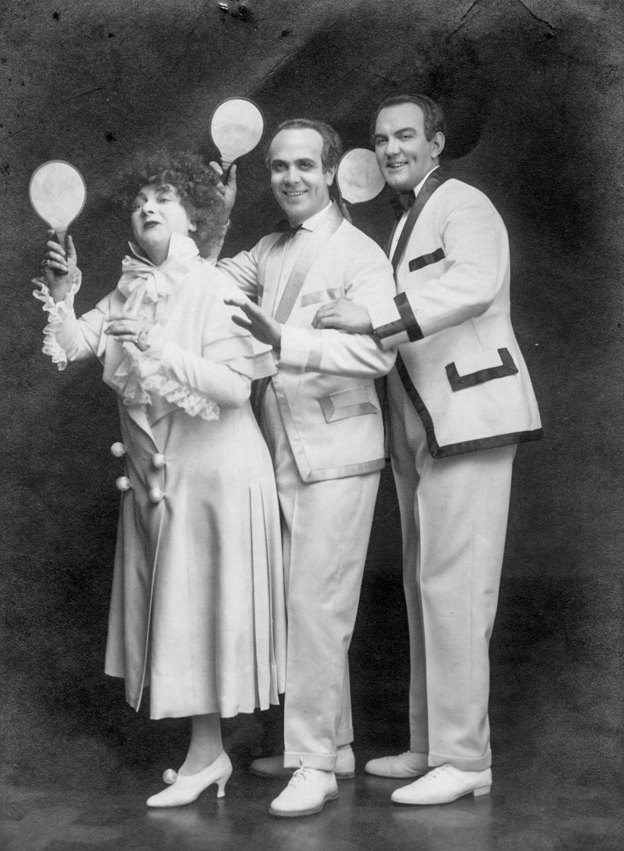 En kvinna och två män - revyartister - Mannen i mitten är Karl-Gerhard.