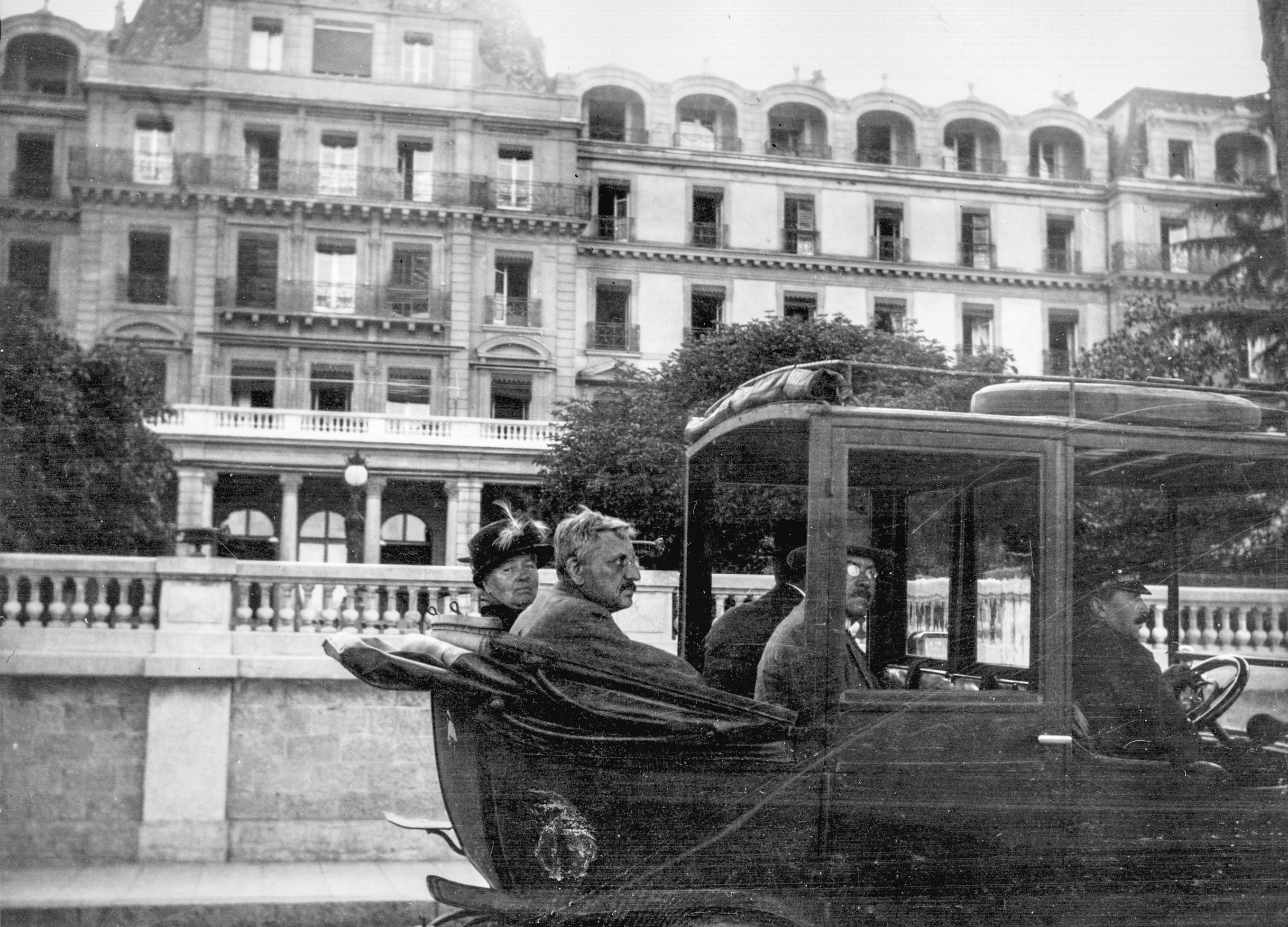 Tre män och en kvinna i en taxibil i Genève.