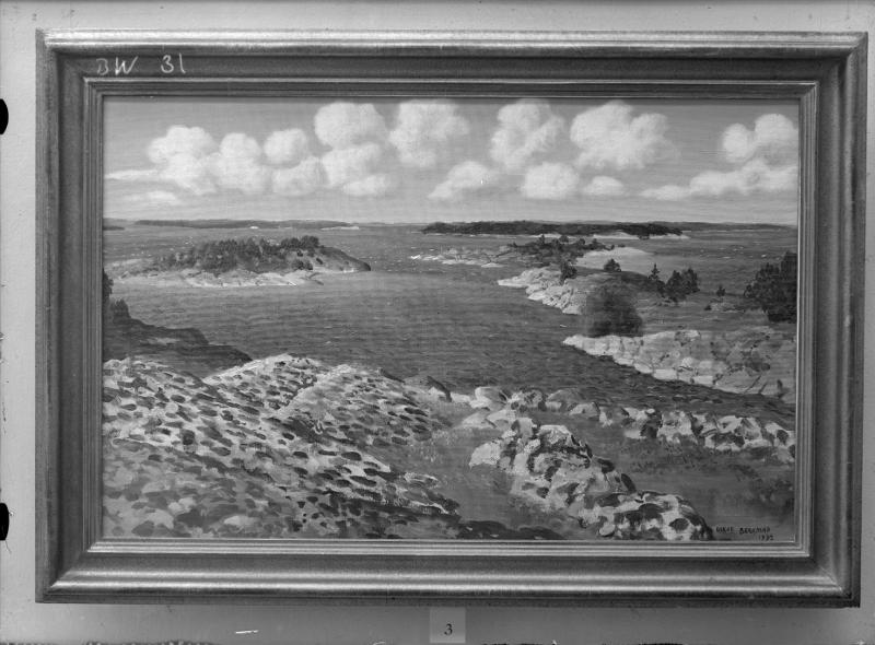 Skärgård, oljemålning sign. Oskar Bergman, 1932 (?) (utställningsnr. 3).