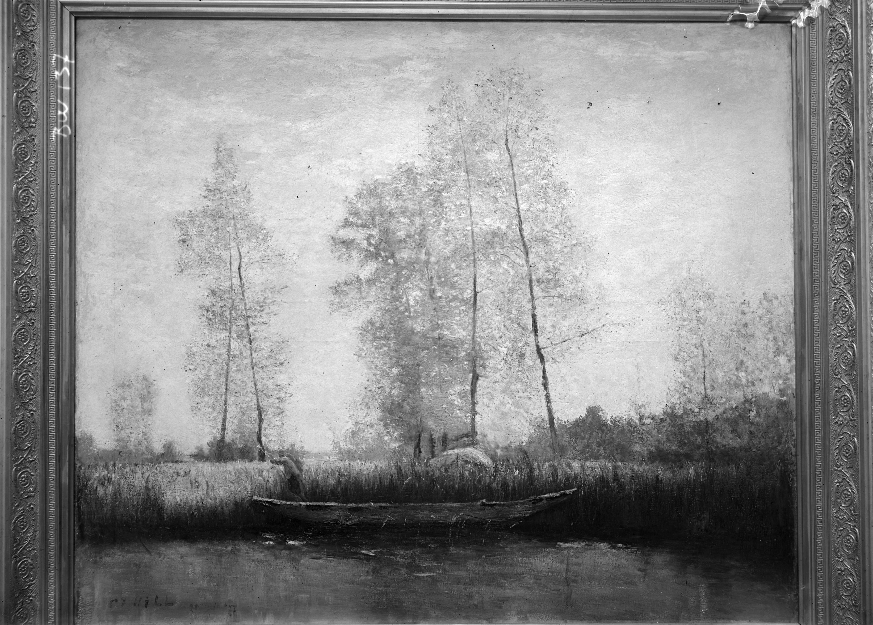 Landskap, man i båt, vass - olja, sign. C.F. Hill -77.