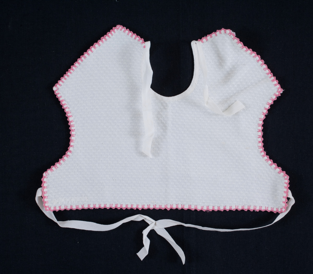 knytband av bomull i halsen och nedtill, ett i var sida.
