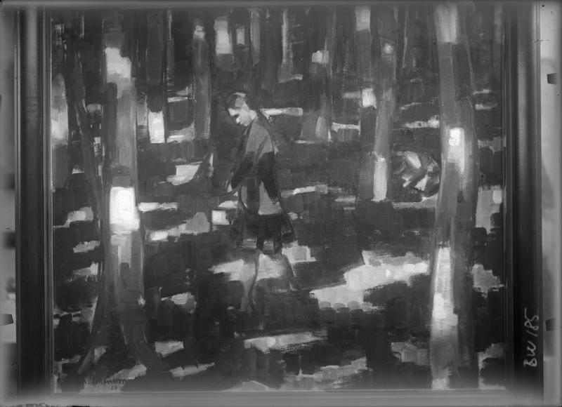 BW 000185 :: målning, skogsbygd, kvinna