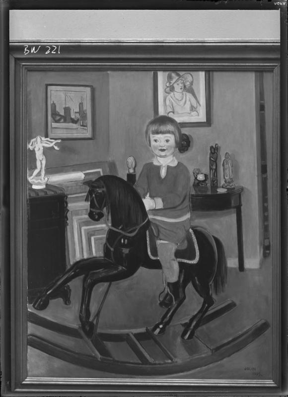 Barn på gunghäst - olja, sign. Jolin 1929.