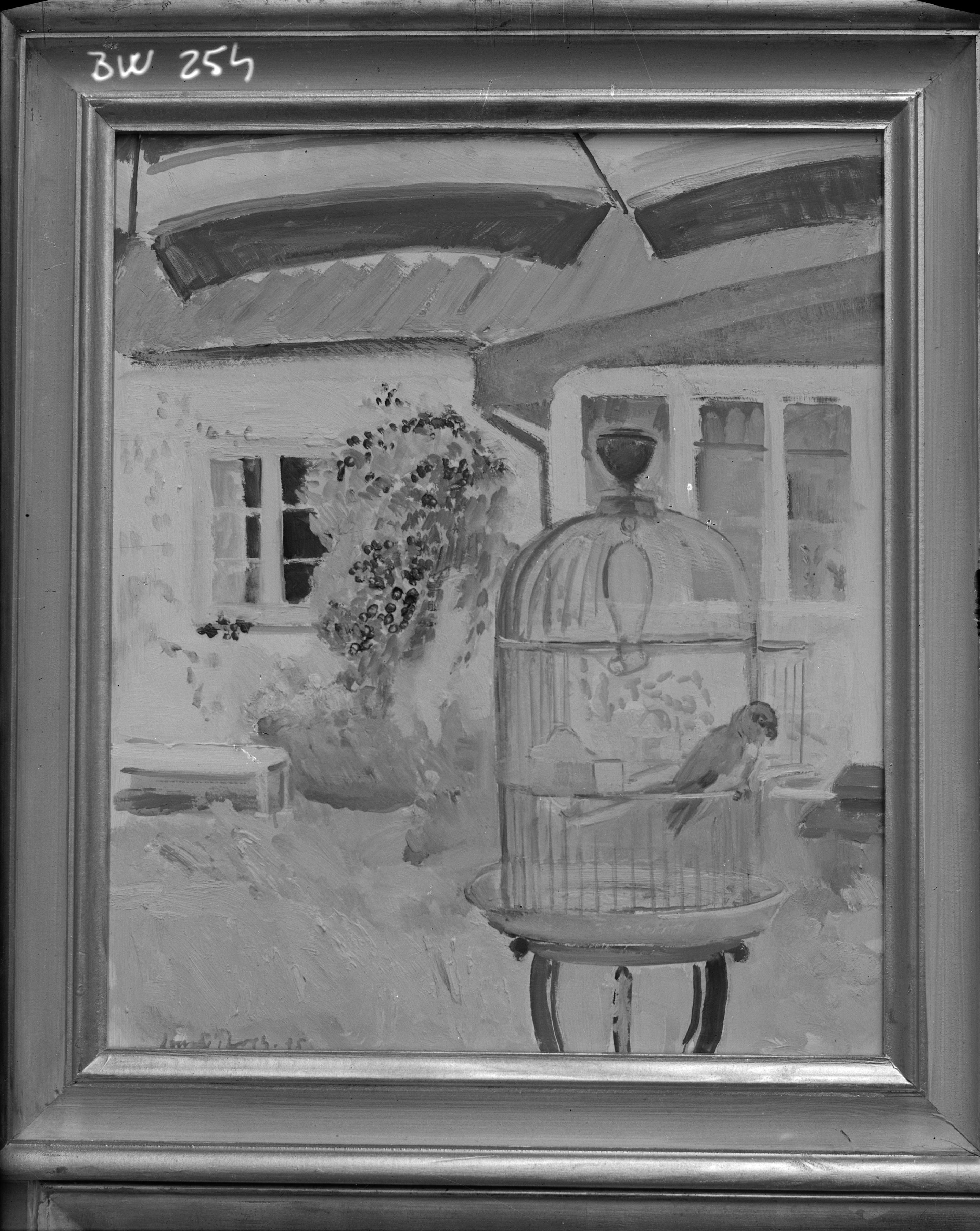 BW 000254 :: målning, interiör, fågel, fågelbur