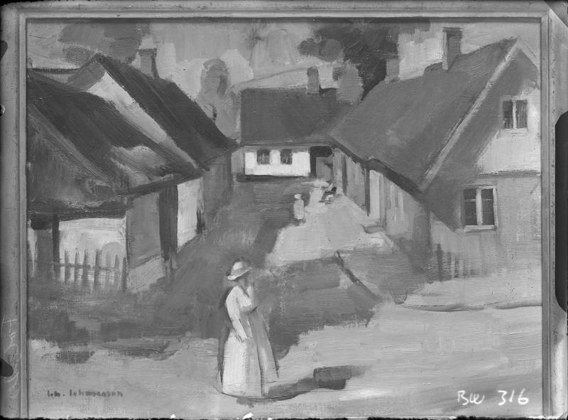 BW 000316 :: målning, stadsgata, hus