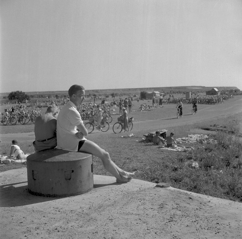Ribersborgs strand, cykelparkering vid en av kustartilleriets pansartorn.