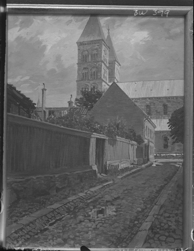 Gatubild, Lunds Domkyrka - olja sign. Jöns Mårtensson 1912.