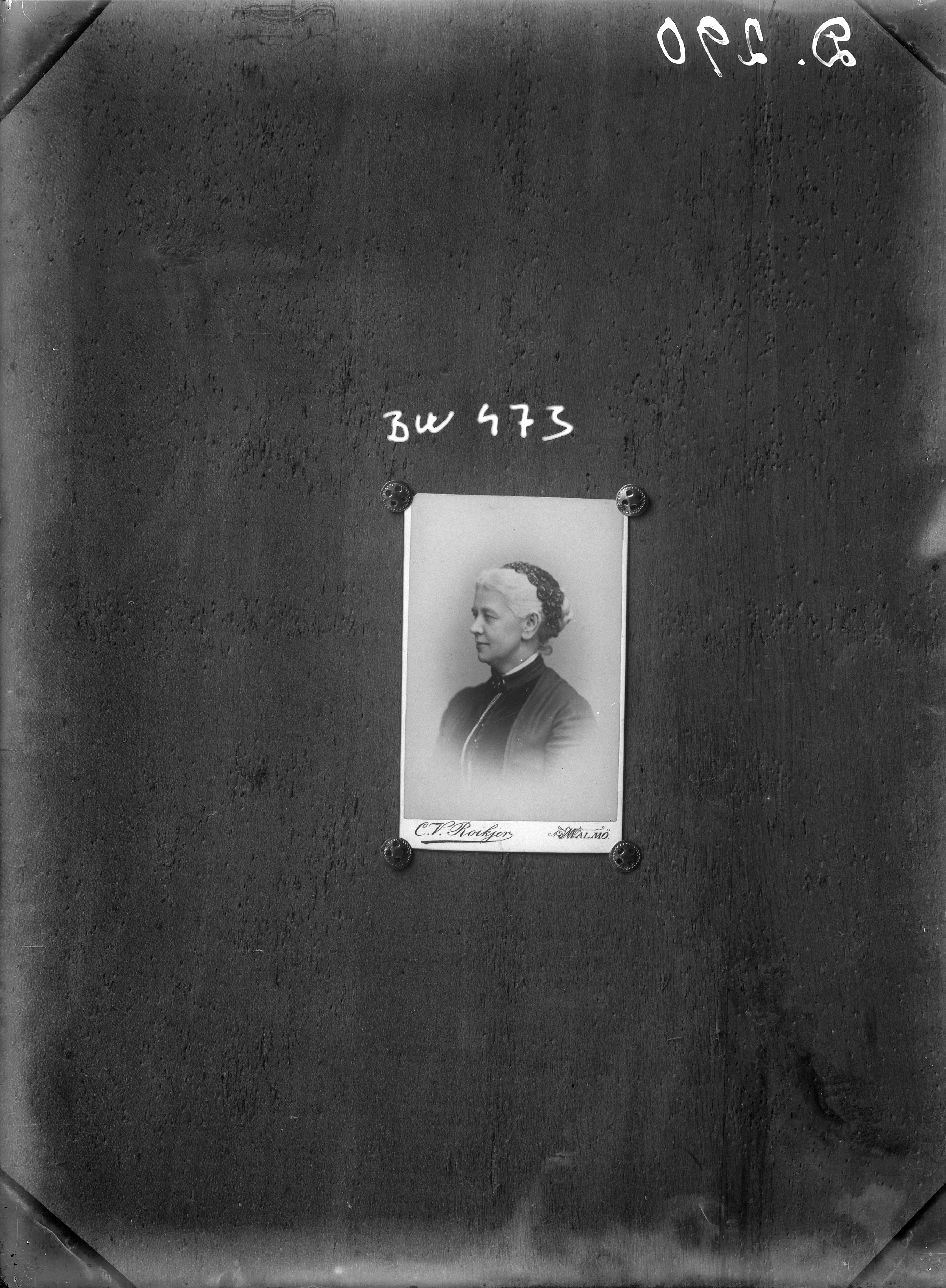 Kvinnoporträtt - foto C. V. Roikjer, Söderg. 18. (Själva bild 3x2 cm)