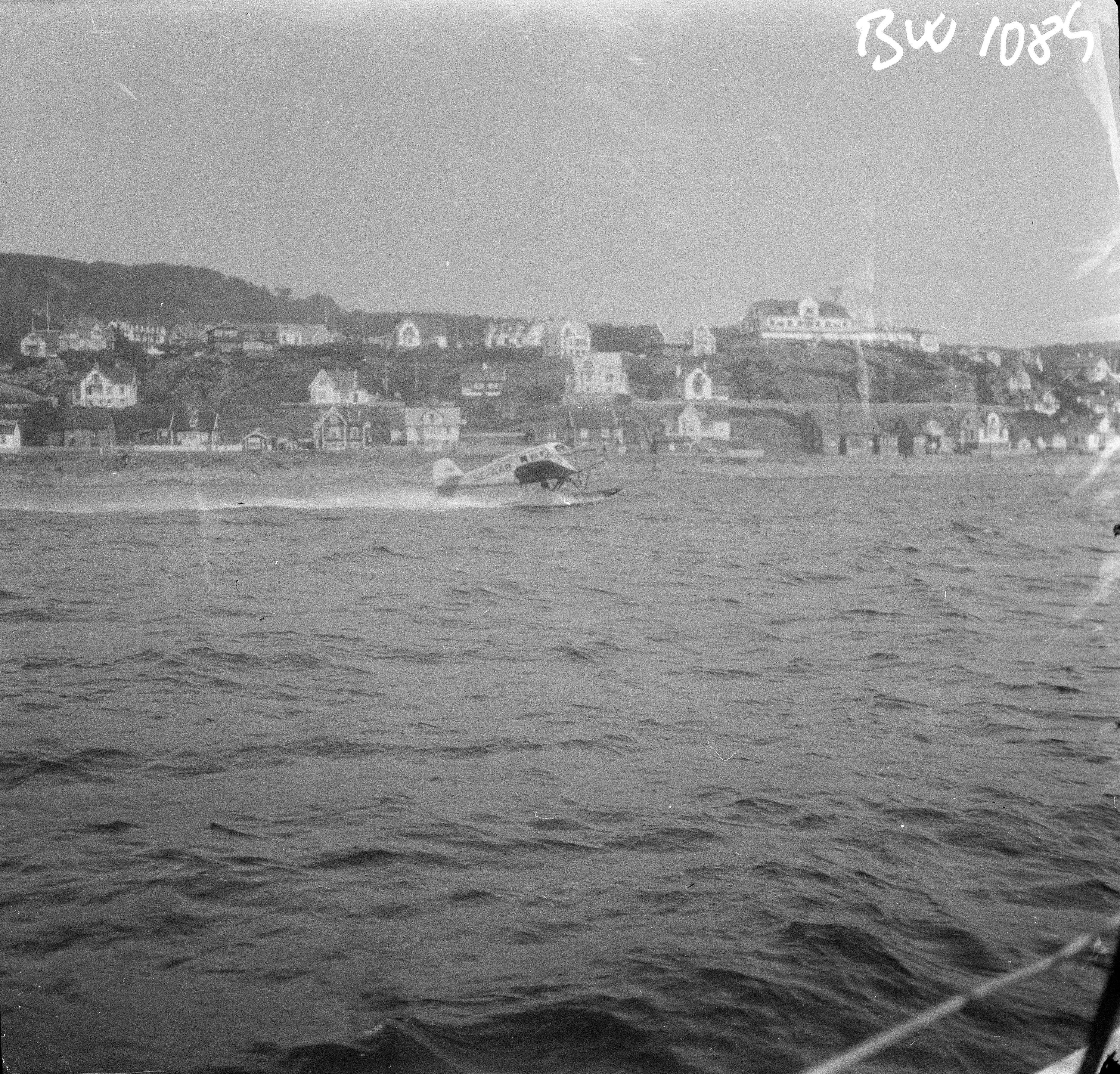 Bebyggelse vid hav (Arild ?) - hydroplan på vattnet (SG - AAB).