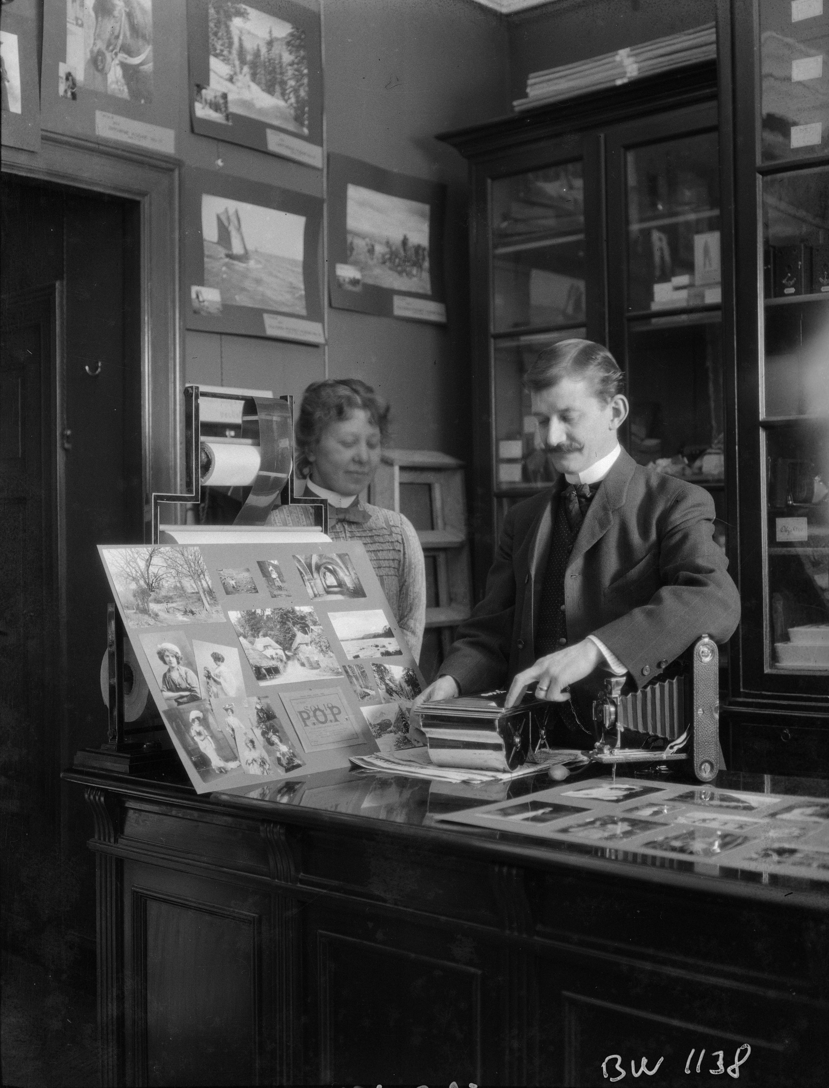 BW 001138 :: fotoaffär, reklam, man, kvinna