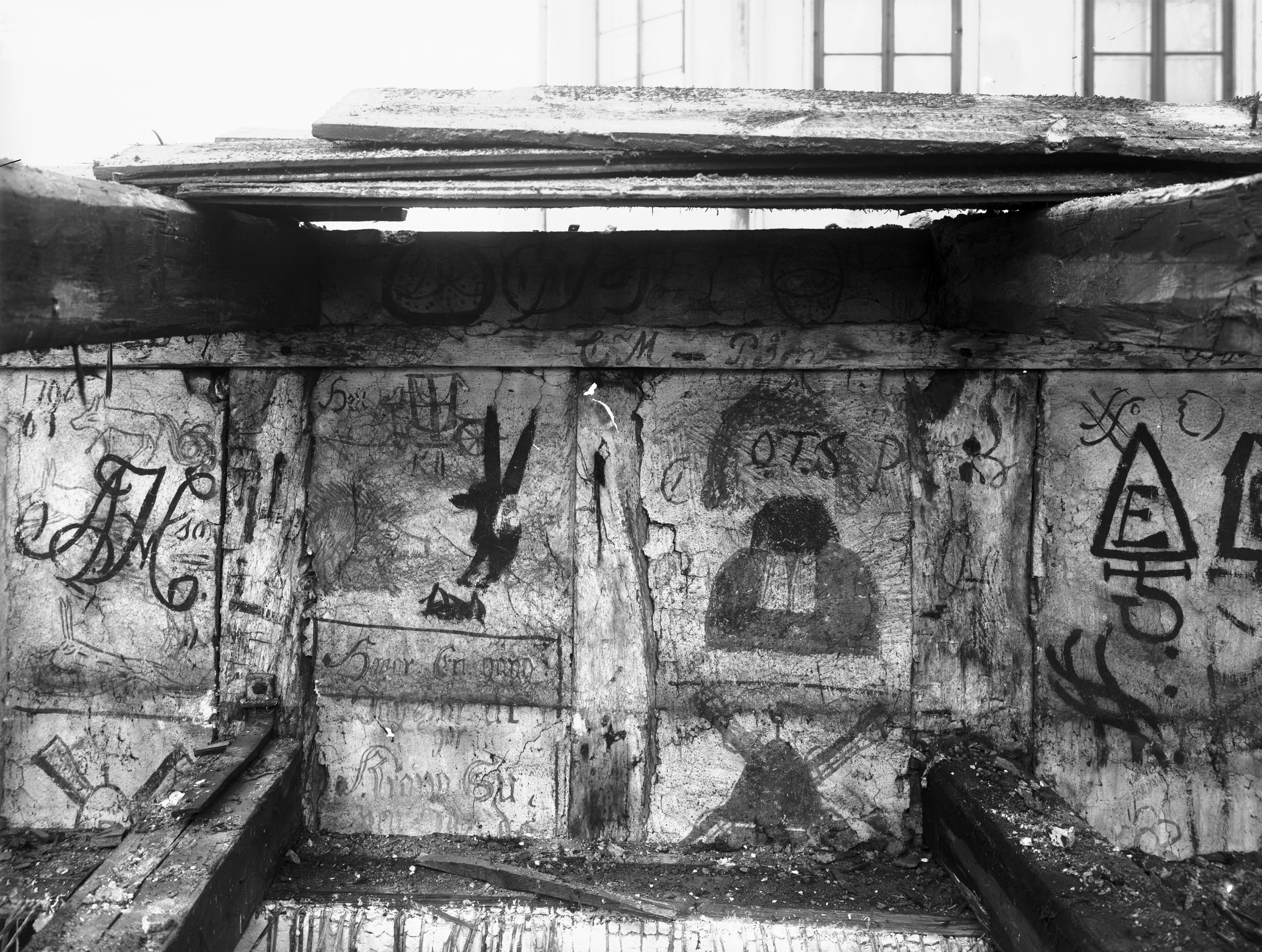 Rivning av Nyströmska huset. Stortorget 11 (numera 17). Väggmålning.
