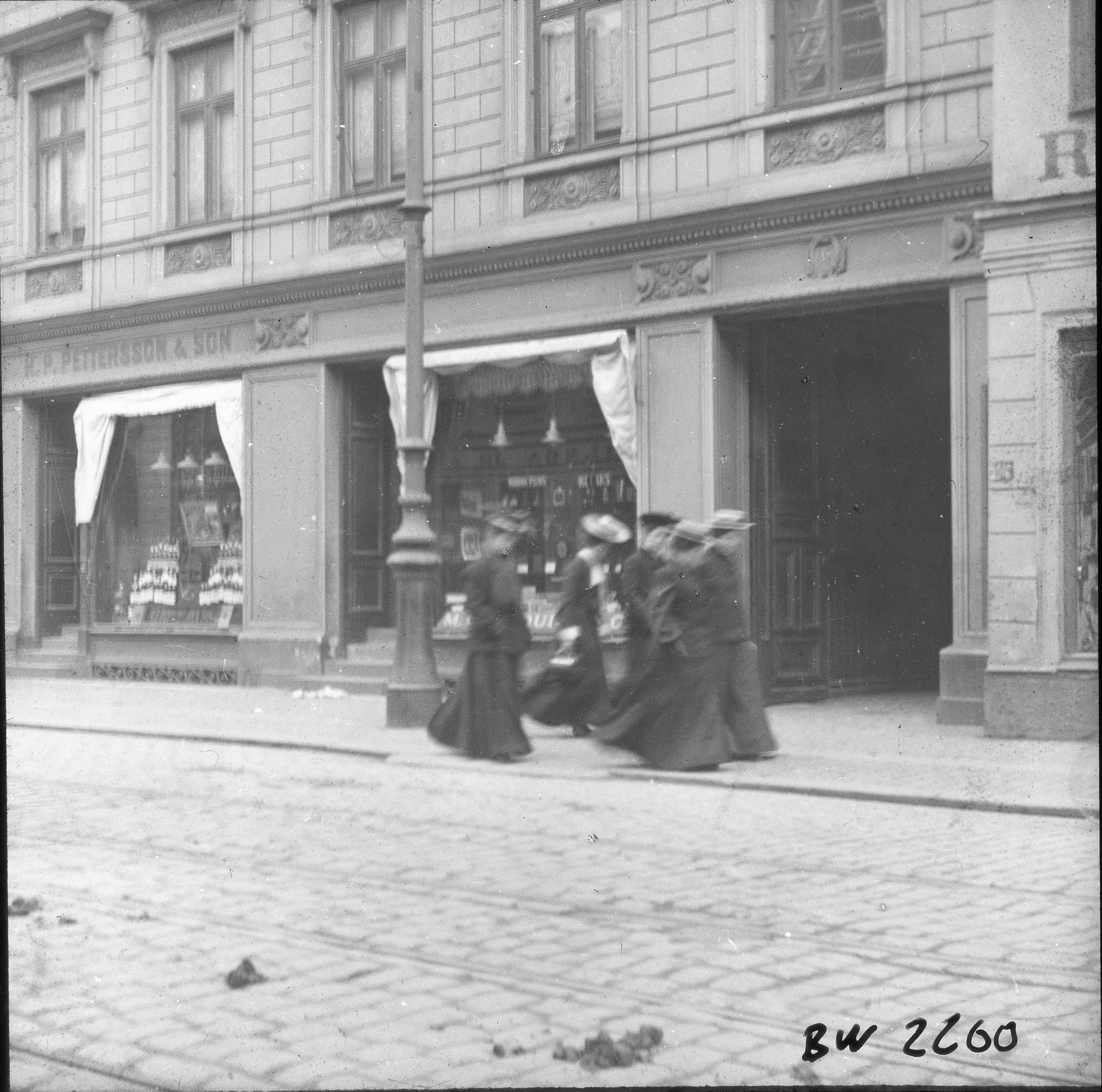 - Gatubild, grupp av kvinnor. Södergatan 36 (sedermera Södergatan 30), kvarter 62, S:t Jörgen, 1905-06.