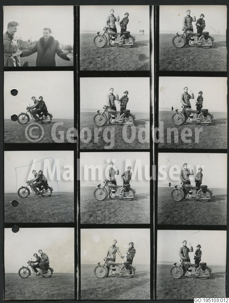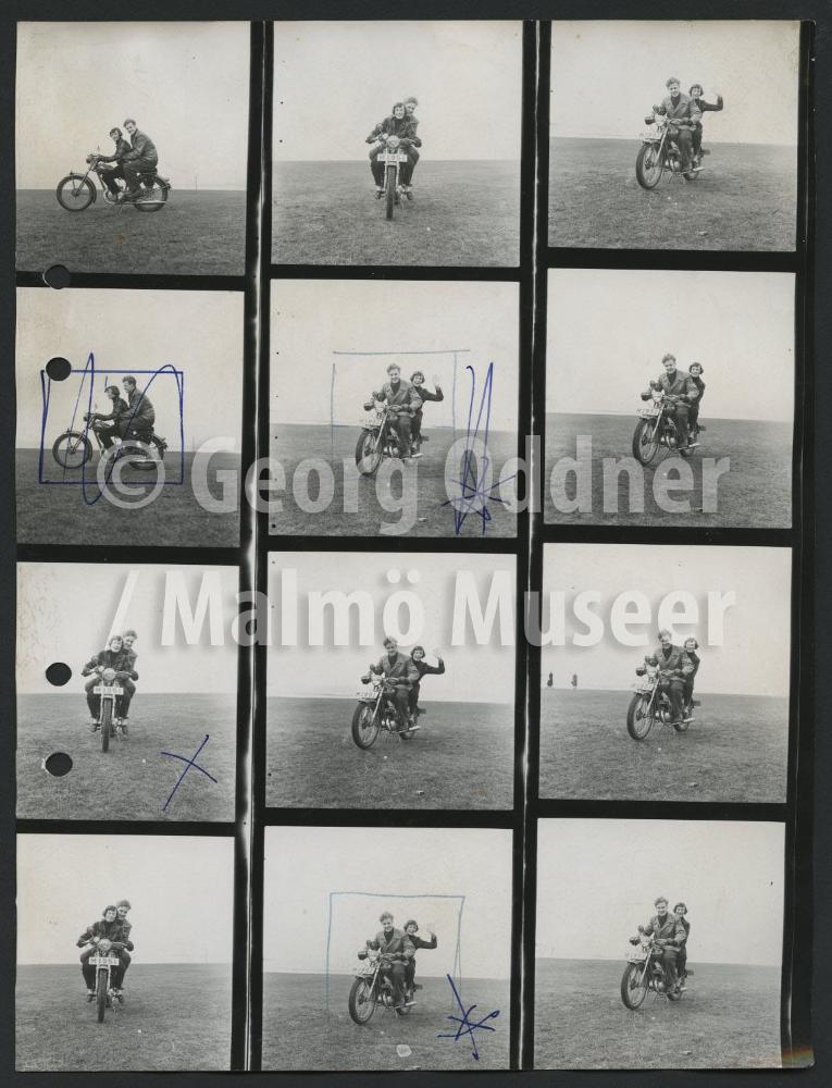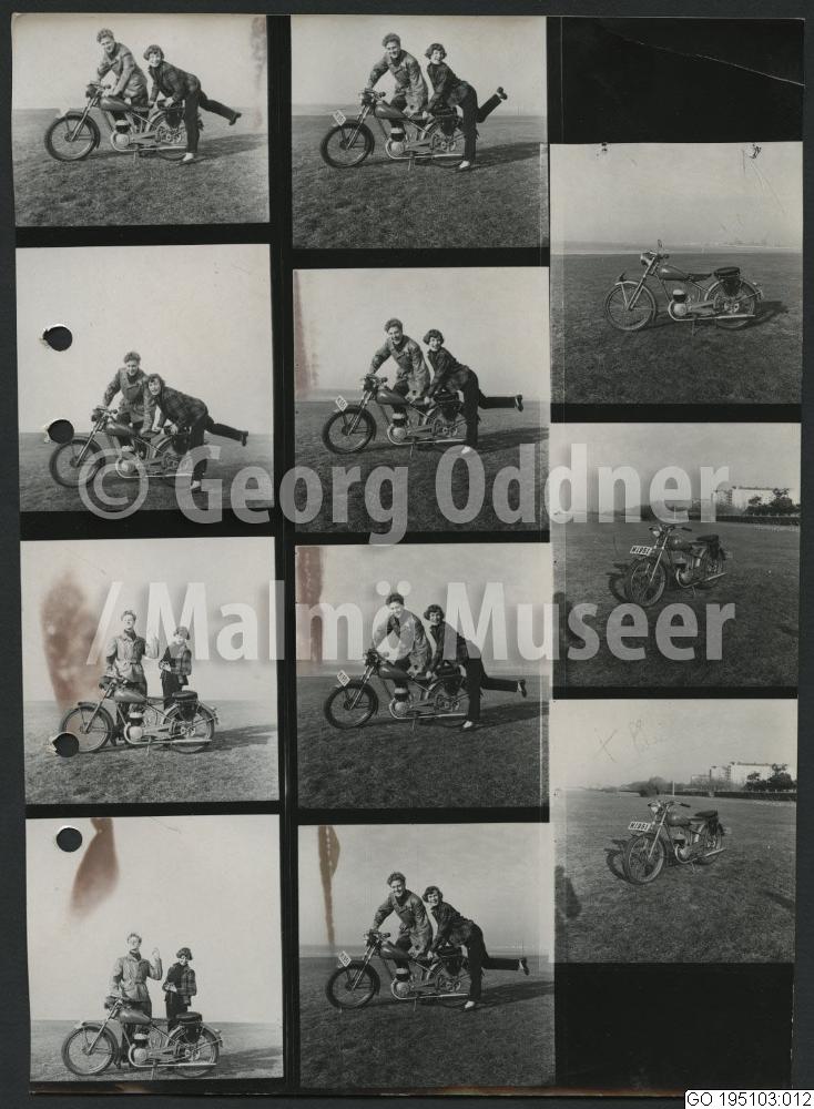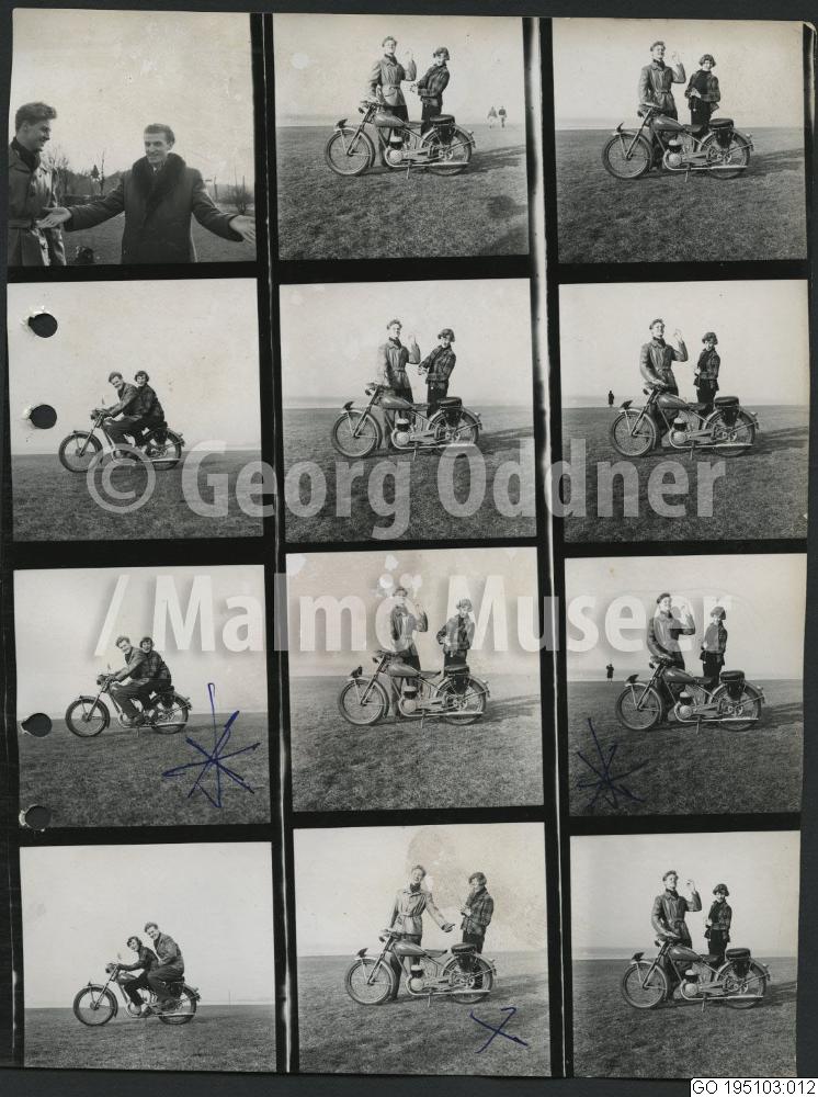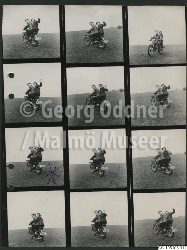 Bosse & Kerstin med motorcykel M.C.; Kontaktkarta skapad av Georg Oddner 1951