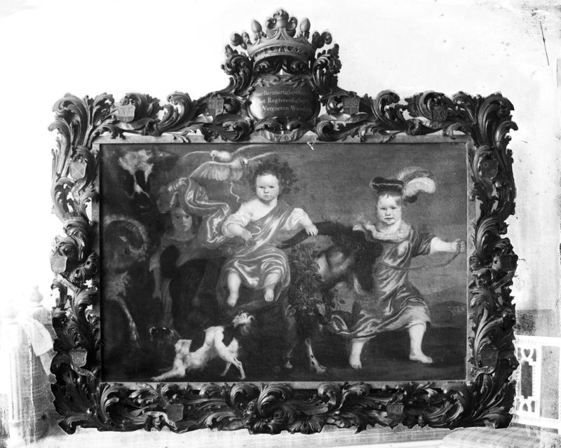 Allegoriska figurer - målning 1700 (pampig ram) - arkitekt Melin.