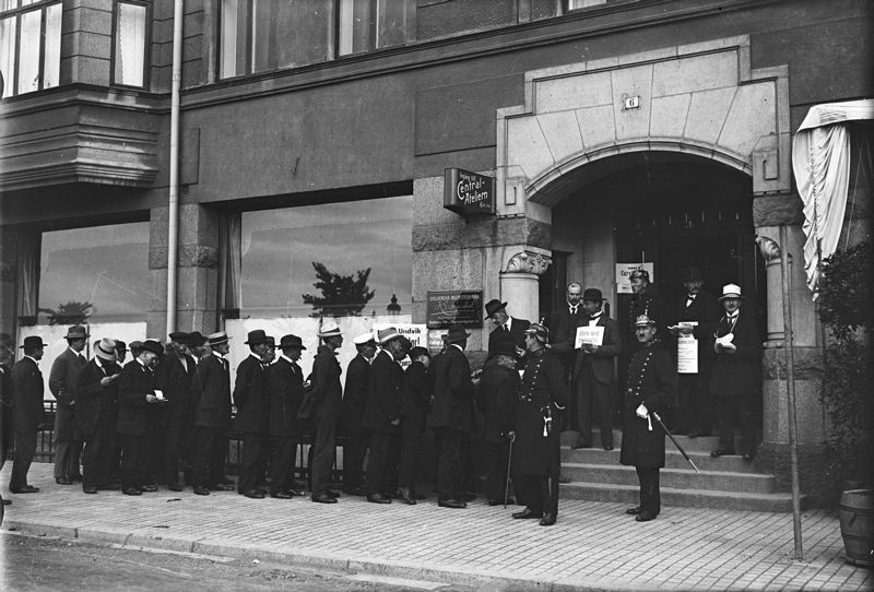 Gatubild - Exercisgatan 6 (Centralateljé). valdagen, väljarna köar.
