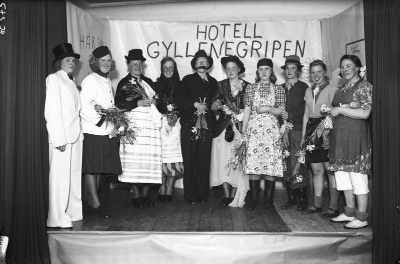 Gruppbild - ? personalklubb, restaurang, teaterspel. Hotell Gyllene Gripen.