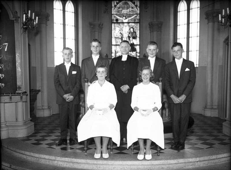 HC 000980 :: gruppbild, konfirmand, kyrkointeriör