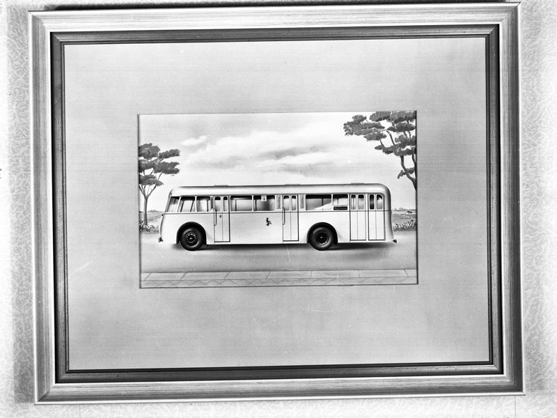 AB Frode Lund - inramad målning av buss (Malmö, linje 15)