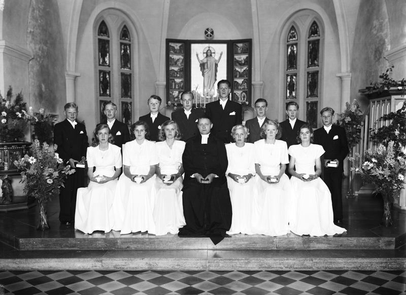 Kyrkointeriör - konfirmander framför altaret - Södra Sallerup