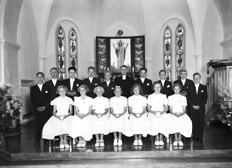 Kyrkointeriör - konfirmander framför altaret - Södra Sallerup
