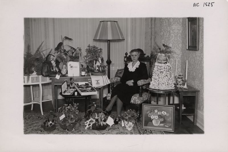 HC 001525 :: interiör, kvinna, födelsedagsgåva