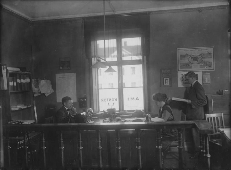 Kontorsinteriör, personal poserar - Amerikanska Motor Importen (AMI)