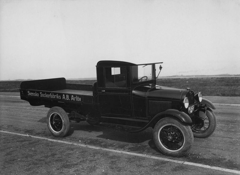 Lastbil vid landsväg - "Svenska Sockerfabriks AB Arlöv". M 1453 Ford