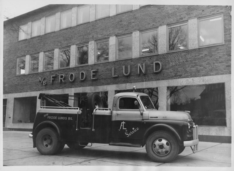 Bärgningsbil vid bilfirman AB Frode Lund.