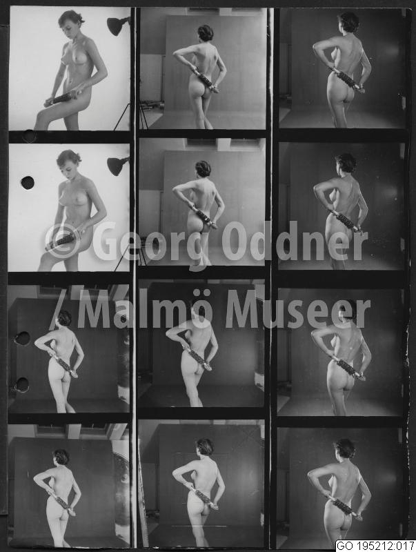 Naken modell med rulle.