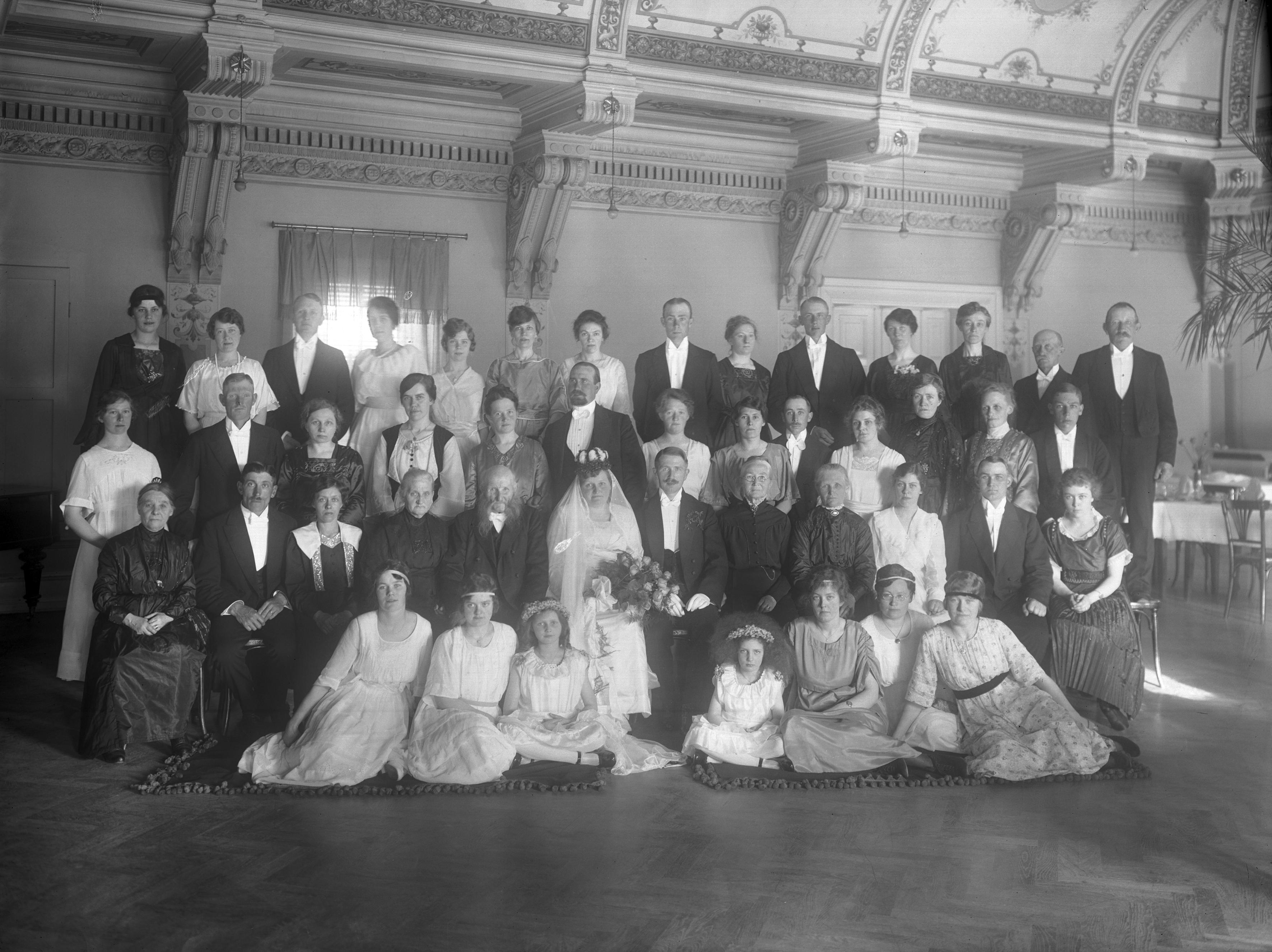 Gruppbild med brudpar.