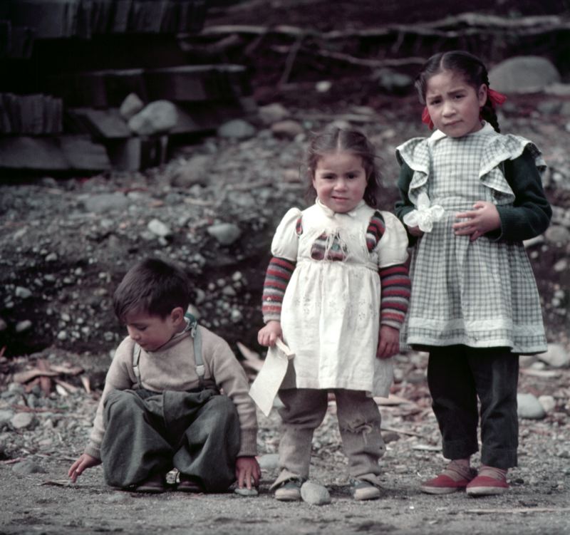 Tre chilenska barn, två flickor och en pojke.