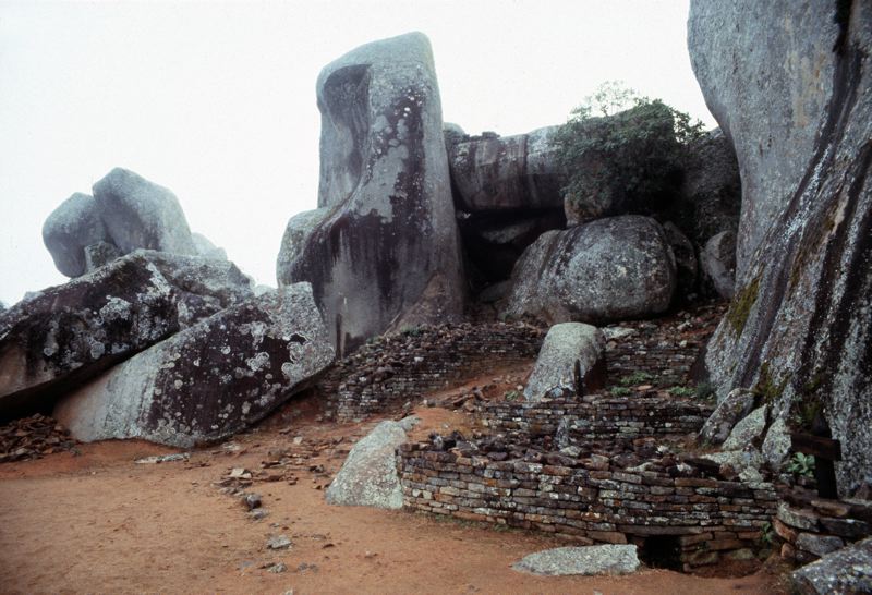 Stora Zimbabwe, byggnadsruiner bland stora stenblock.