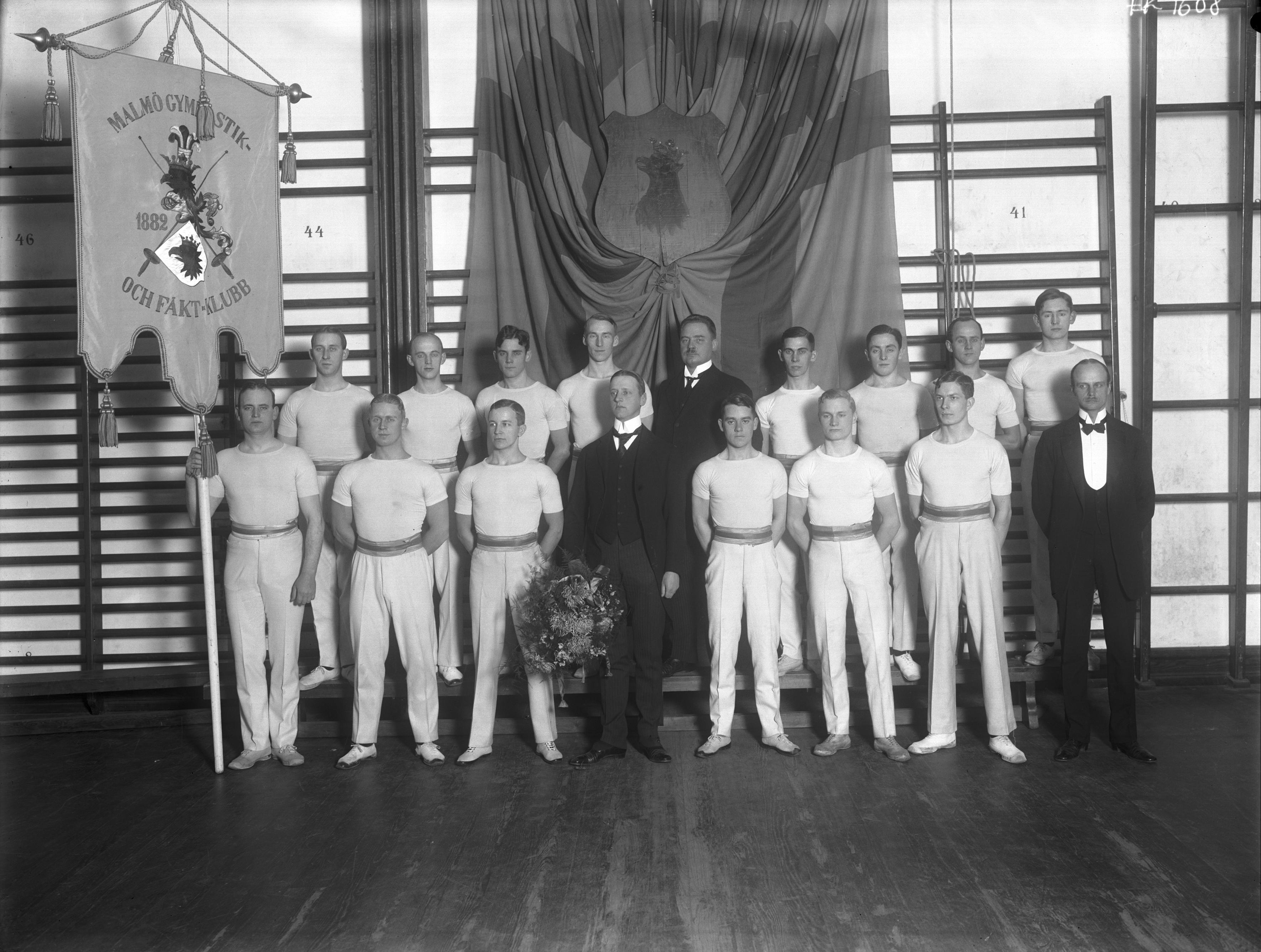 Gruppbild gymnaster. Malmö Gymnastik och Fäktklubb.