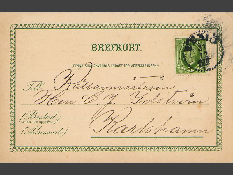 Kortet är adresserat till: Källarmästaren / Herr C. J. Solström / Karlshamn".