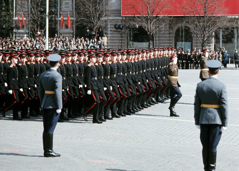 Första maj-firandet. Militärparad.