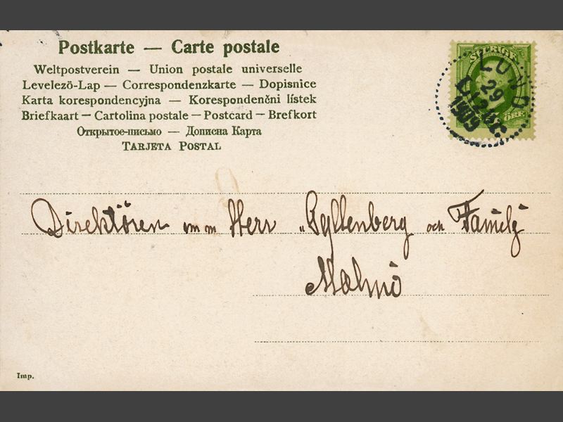 Kortet är adresserat till. "Direktören mm Herr Gyllenberg och Familj / Malmö".